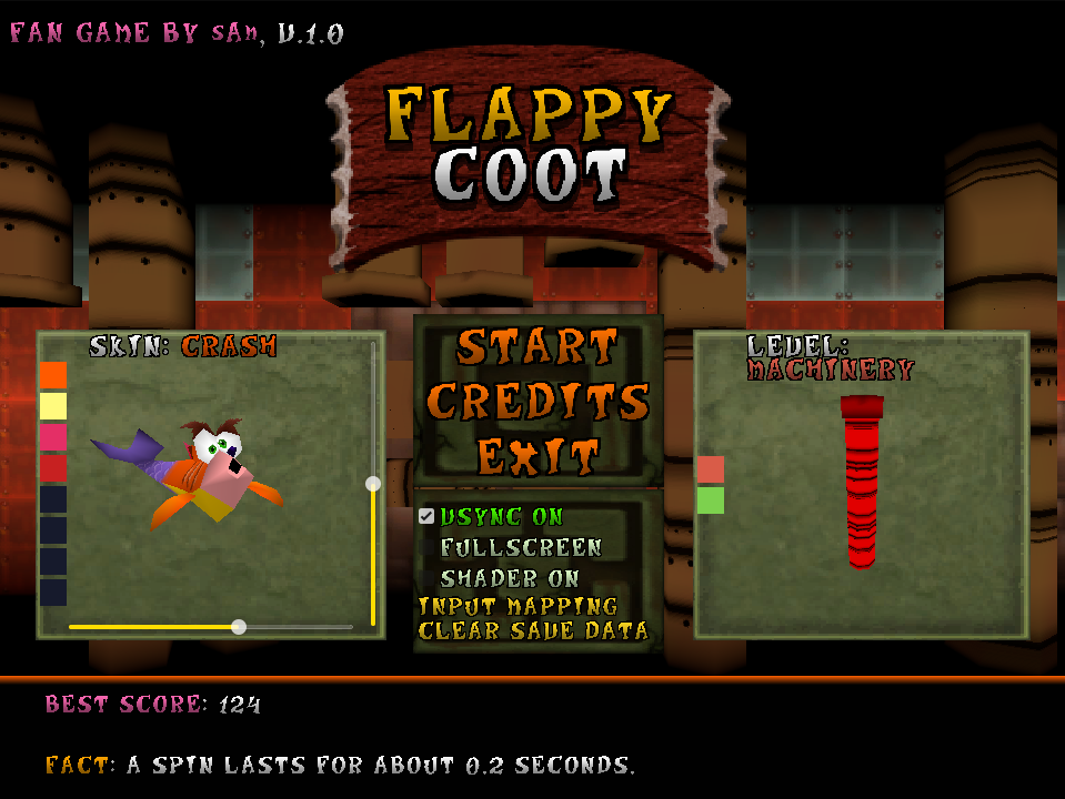 | Tags | 3D, crash-bandicoot, Fangame, Flappy Bird, Godot, No AI, PSX (PlayStation), Short, Simple, Singleplayer |